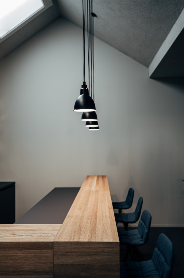 Konzept, Entwurf, Detailplanung und Umsetzung. Neues Möblierungs-, Farb-, Material- und Lichtkonzept in der denkmalgeschützten Alten Weberei in Reutlingen.