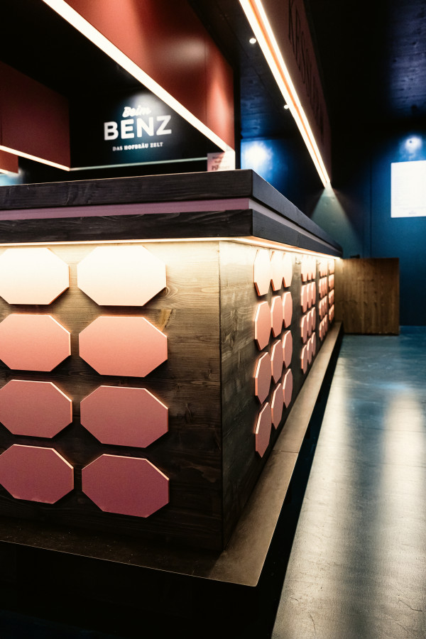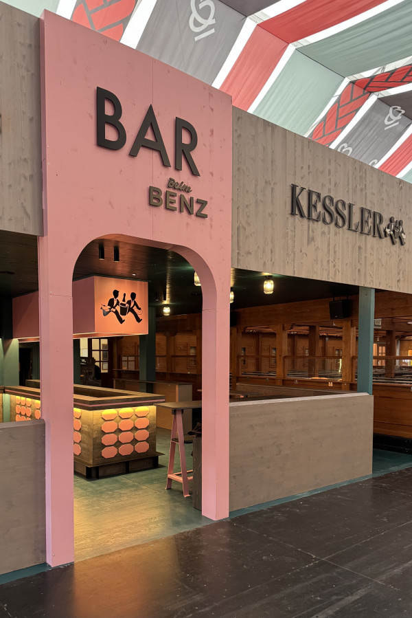Entwurf, Planung und Realisierung der offenen Kessler-Loge, Neues Material-, Farb-, Möbel- und Lichtkonzept für das neue Festzelt auf dem Frühlingsfest und Cannstatter Wasen in Stuttgart