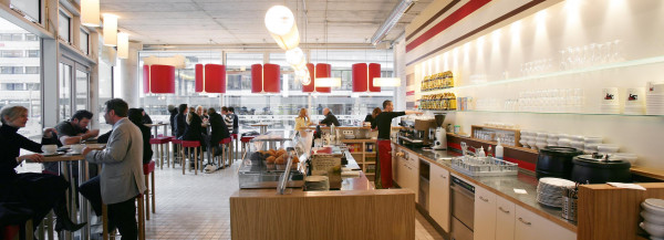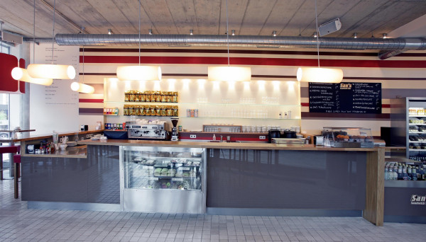 Entwurf und Detailplanung der San's Sandwich Systemgastronomie, Realisierung: Kleiner Schlossplatz, Lerchenstraße, Rotebühlstraße in Stuttgart