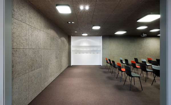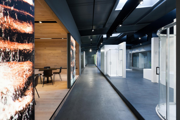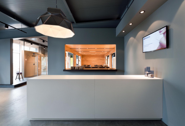 Im neuen Firmensitz von SanSwiss in Forst wurde eine Produktausstellung mit angegliedertem Seminarzentrum konzipiert. Die Industriehalle wurde so zu einer zeitgemäßem Präsentationsplattform mit der Möglichkeit das Fachpublikum auch sachkundig in einer modernen Umgebung zu schulen.