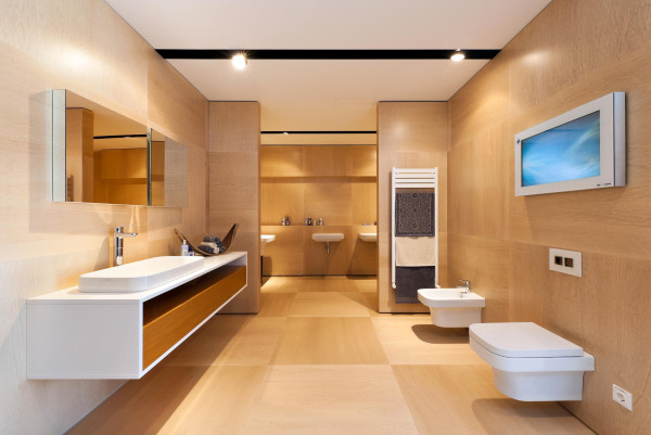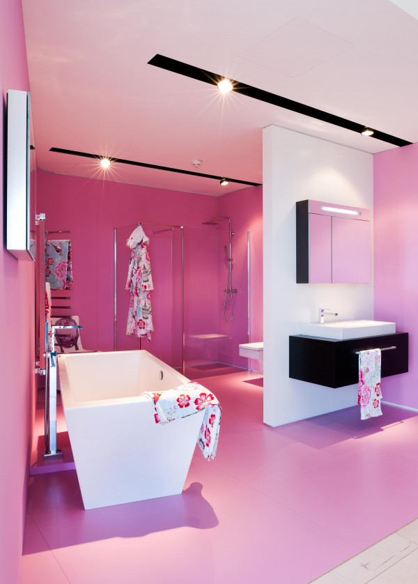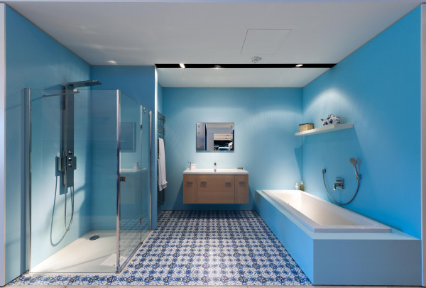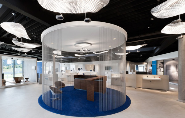 In würfelförmigen Kisten werden Bäder mit Möbeln inszeniert. Durch die verwendeten Rastergrundrisse sind die Produkte bei Bedarf leicht austauschbar. Die gesamte Box ist so konstruiert, dass sie einfach abgebaut und an anderer Stelle – beispielsweise auf einer Messe – wieder errichtet werden kann. Weitere Kisten, Berater-Lounge genannt, enthalten bequeme Sofas und bieten Gelegenheit für ein entspanntes Beratungsgespräch.